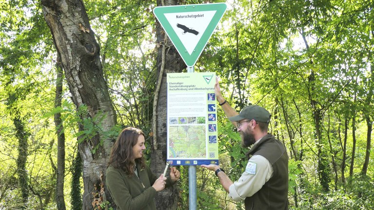 Um verstärkt auf die Regelungen im Naturschutzgebiet: „Ehemaliger Standortübungsplatz Aschaffenburg und Altenbachgrund“ - kurz „Exe“ genannt - hinzuweisen, wurden vom Naturpark Spessart in Absprache mit dem Amt für Umwelt und Verbraucherschutz der Stadt Aschaffenburg neue Hinweisschilder montiert.