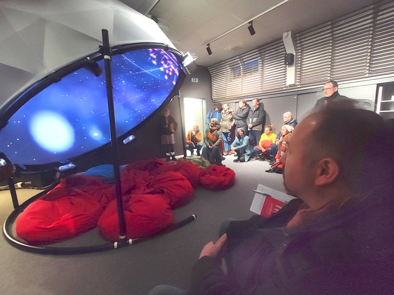 Robert Schwan, Projektleiter des Schiffs bei der experimenta GmbH, führte die Anwesenden durch die interaktive Ausstellung. Diese werde, so erklärte er, von Kindergärten, Schulklassen und Privatpersonen besucht. Dabei gelte das Schiff mit 550 Quadratmeter Nutzfläche als außerschulischer, vom Kultusministerium anerkannter Lernort. Neben der Ausstellung gibt es Laborkurse und Workshops für unterschiedliche Altersstufen. Grundschulkinder können beispielsweise Versuche zur Dichte von Flüssigkeiten machen, ältere Schülerinnen und Schüler die Funktion eines Latent-Wärmespeichers kennenlernen.