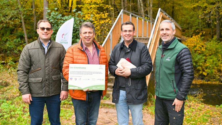 Die Geschichte hinter der neuen Brücke begann mit einem Problem, das viele Regionen kennen: Zuständigkeiten enden dort, wo die Natur keine Grenzen zieht: Die Schondra bildet die Linie zwischen zwei Landkreisen, zwei Gemeinden und zwei Naturparken – eine organisatorische Herausforderung. „Doch anstatt sich in Zuständigkeiten und Bürokratie zu verlieren“, so Gräfendorfs Bürgermeister Johannes Wagenpfahl, „entschieden sich alle Beteiligten für Kooperation.“