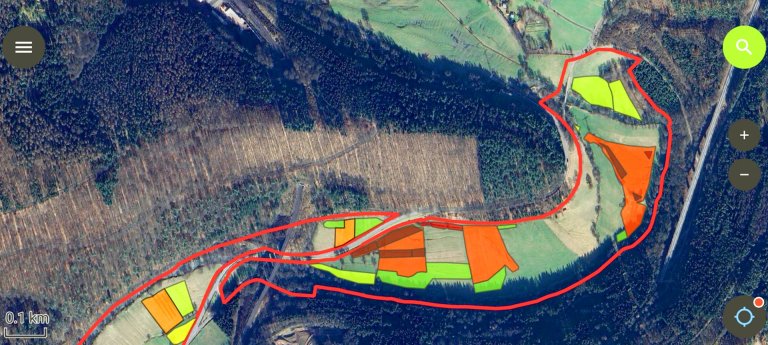 Auch im Naturschutzgebiet Sinngrund kommt QField zum Einsatz: Hier hat sich das giftige Wasser-Kreuzkraut stark ausgebreitet. Durch Mähen und händisches Ausstechen soll dem entgegengewirkt werden. Welche Flächen dabei besonders stark befallen sind und daher intensiver bearbeitet werden müssen, haben wir in QField erfasst. Etwaige Änderungen können direkt auf der Fläche eingegeben werden und so schnell und unkompliziert aktualisiert werden.